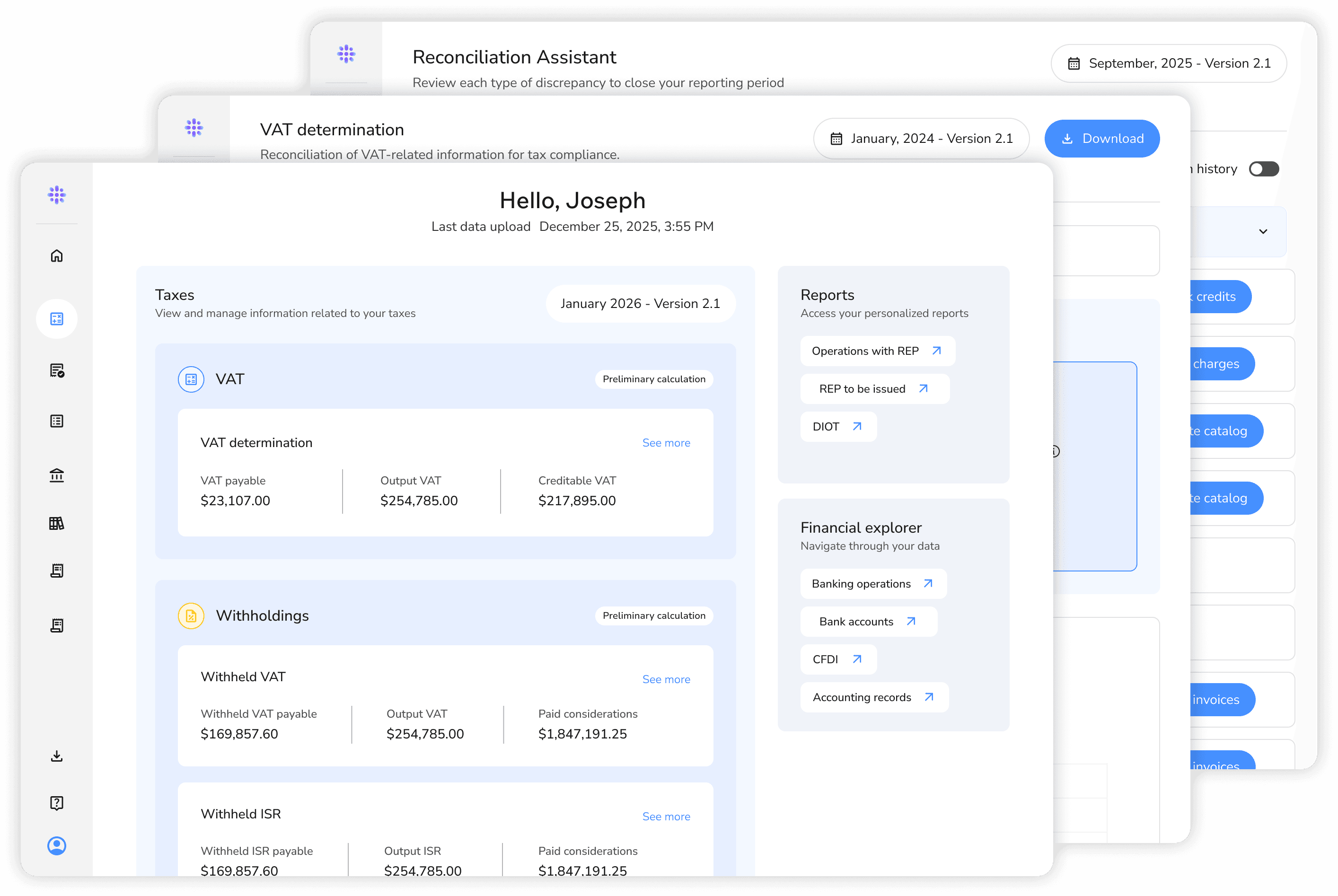 We provide you with structured, auditable, and ready information for any requirement. Optimize your processes, minimize the risk of errors, and shield your fiscal position.